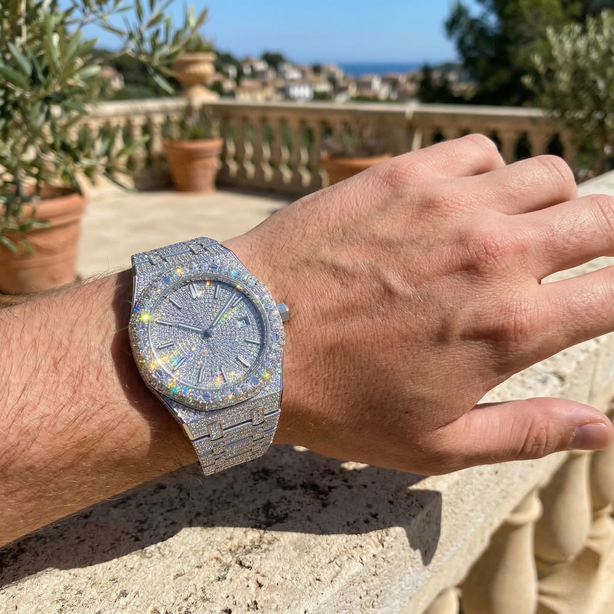 Bust Down Moissanite Watch D-Color VVS Iced Out Self-Winding Automatic Movement