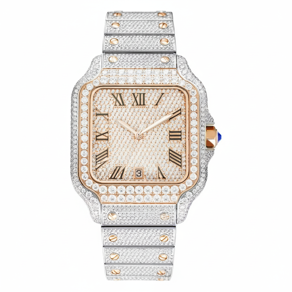 Custom Luxury Square Quartz Movement Iced Watch for Men's Collection Stainless Steel Hip Hop Jewelry High Quality 5mm Glass Dial