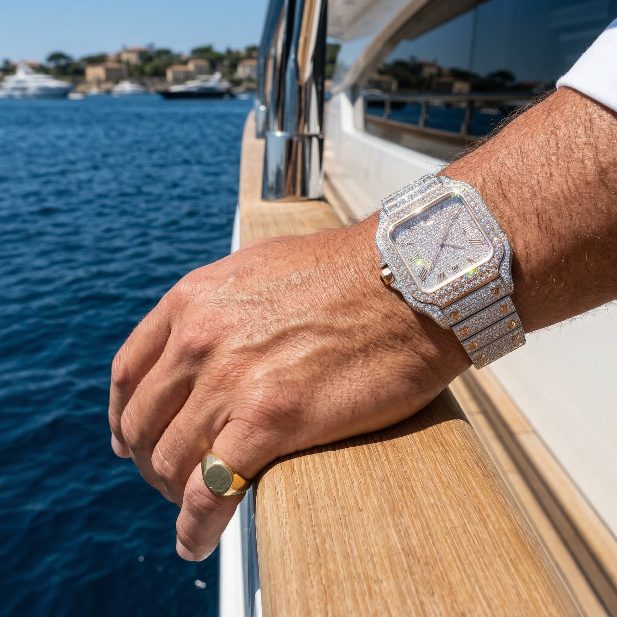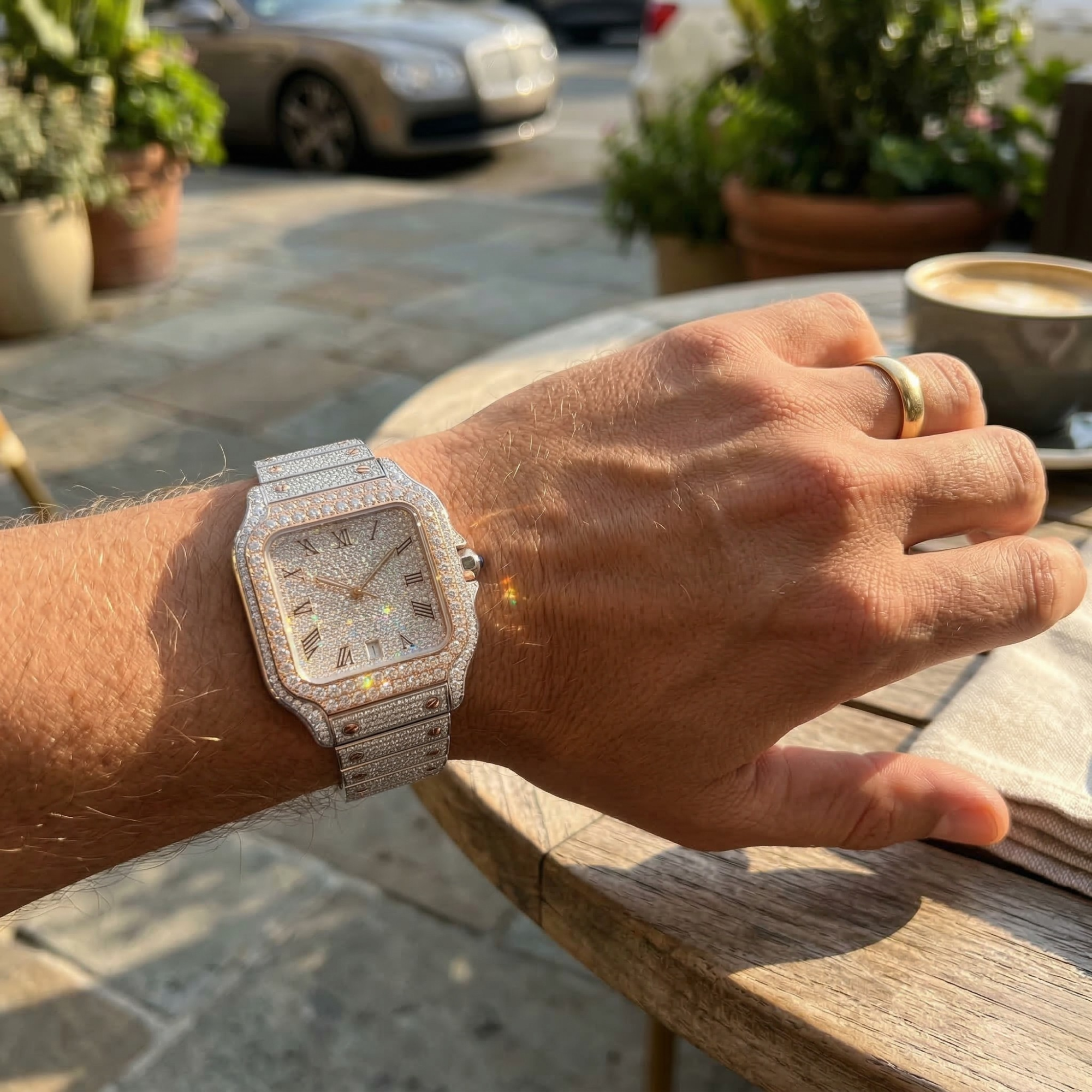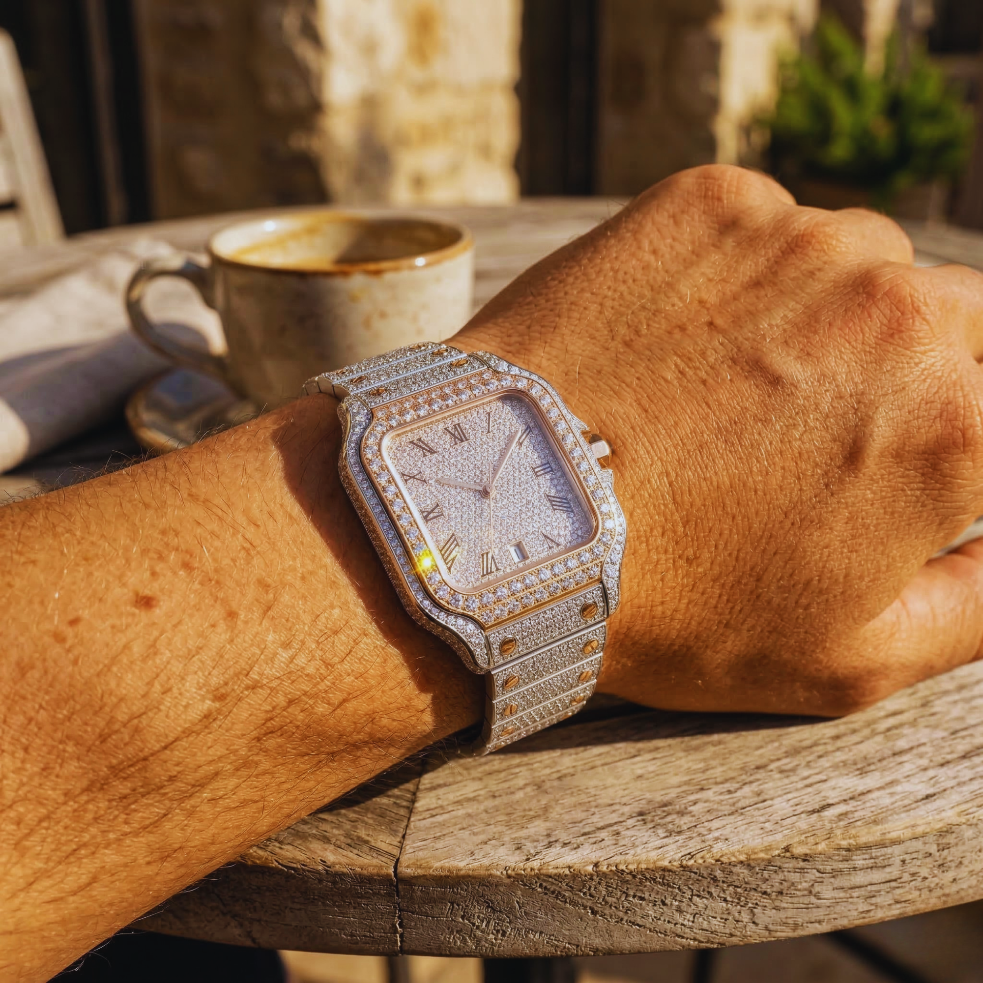 Men's Iced Out Bust Down Watch | 42mm VVS Moissanite 16CT | D-Color Diamond Tester Approved | Automatic Self-Winding | GRA Certified