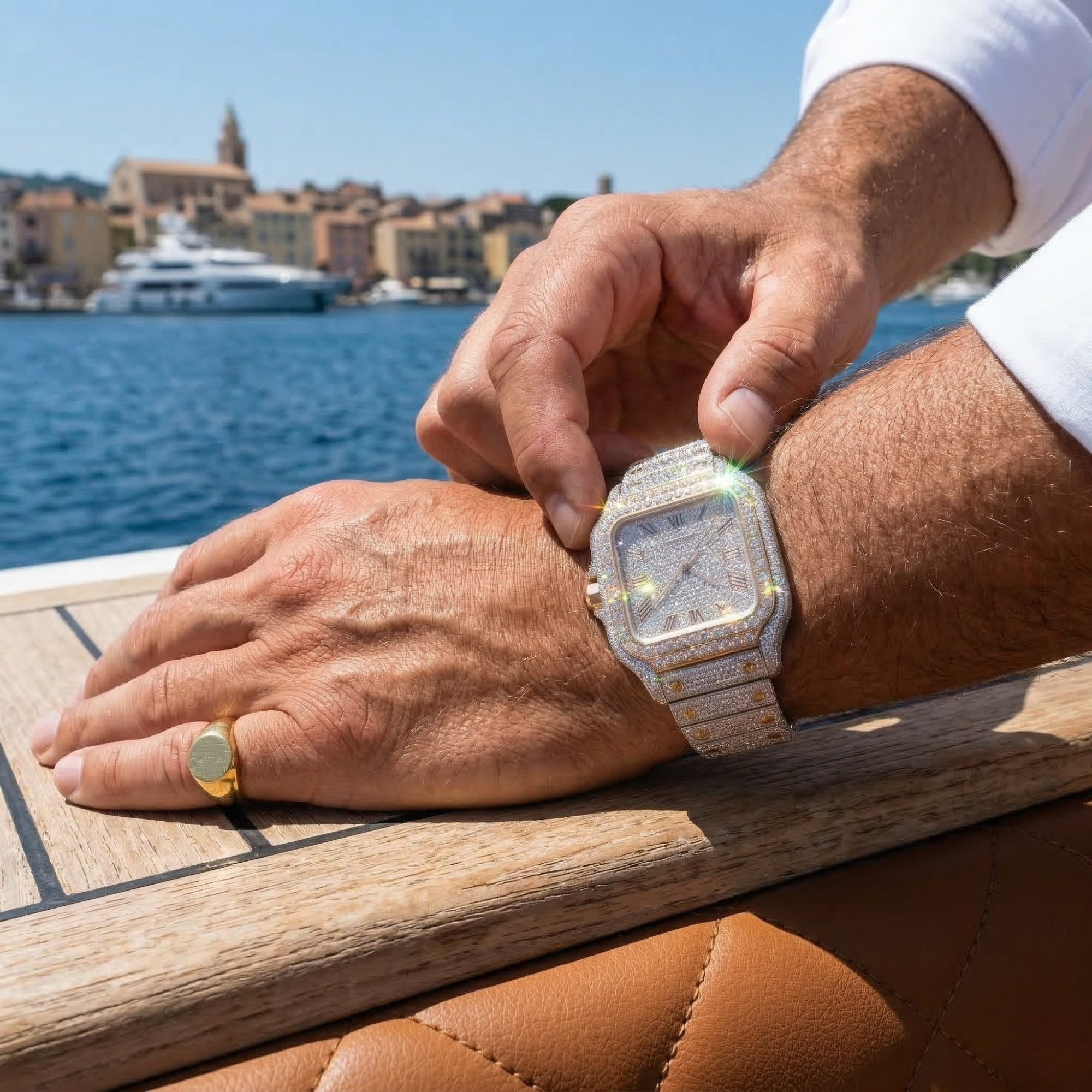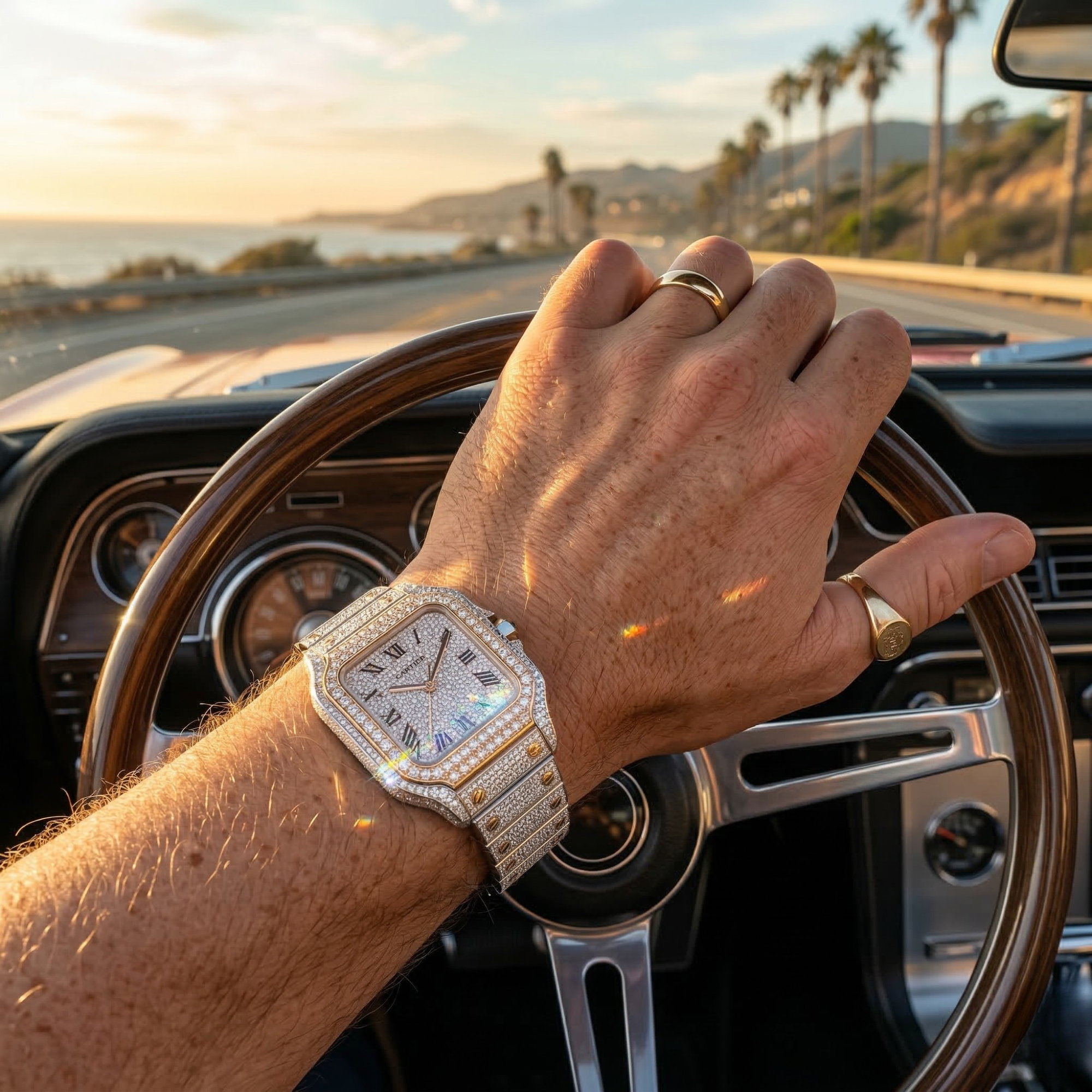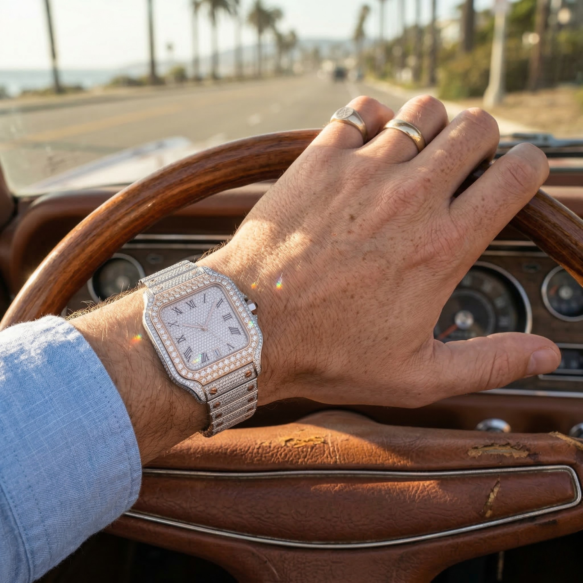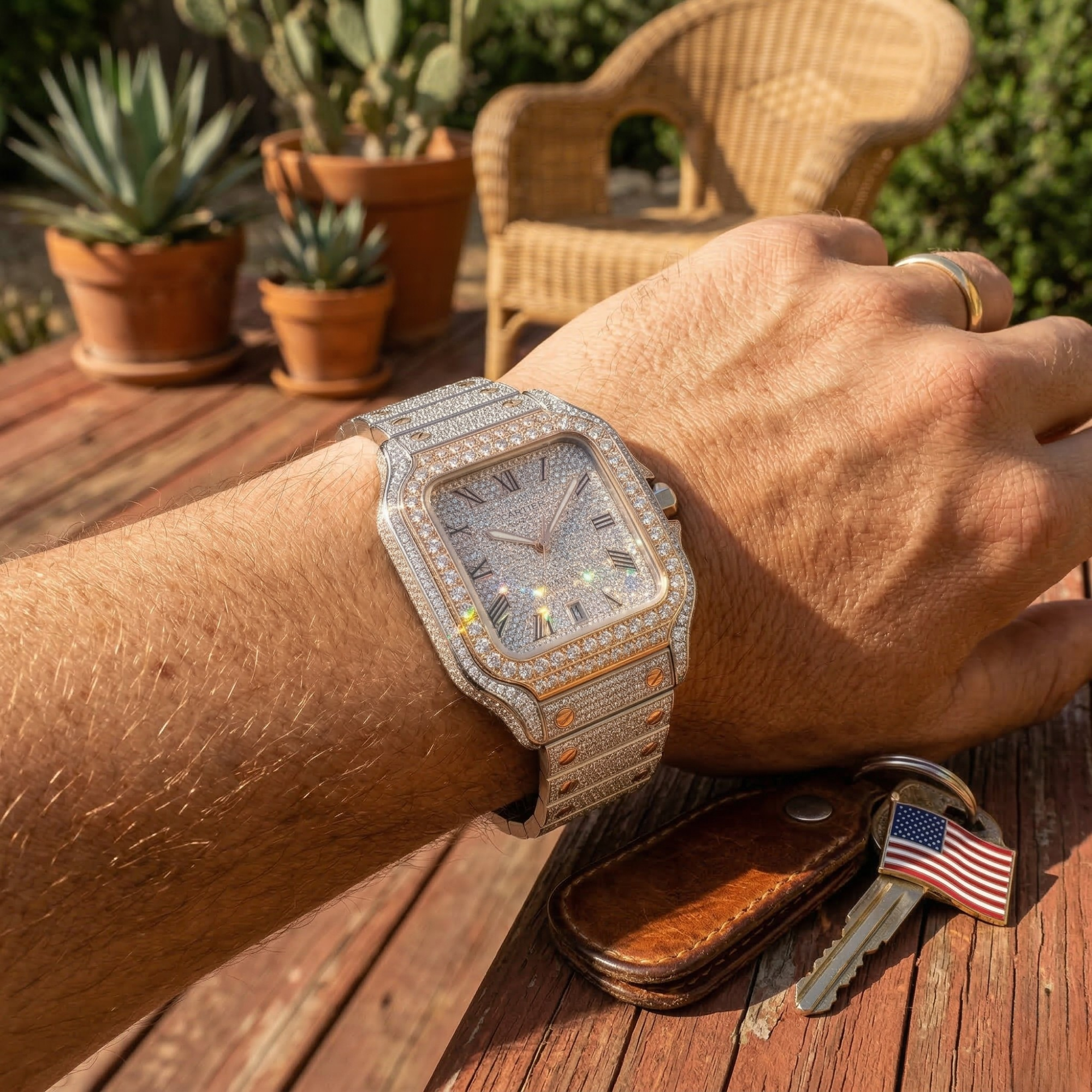 Men's Iced Out Bust Down Watch | 42mm VVS Moissanite 16CT | D-Color Diamond Tester Approved | Automatic Self-Winding | GRA Certified