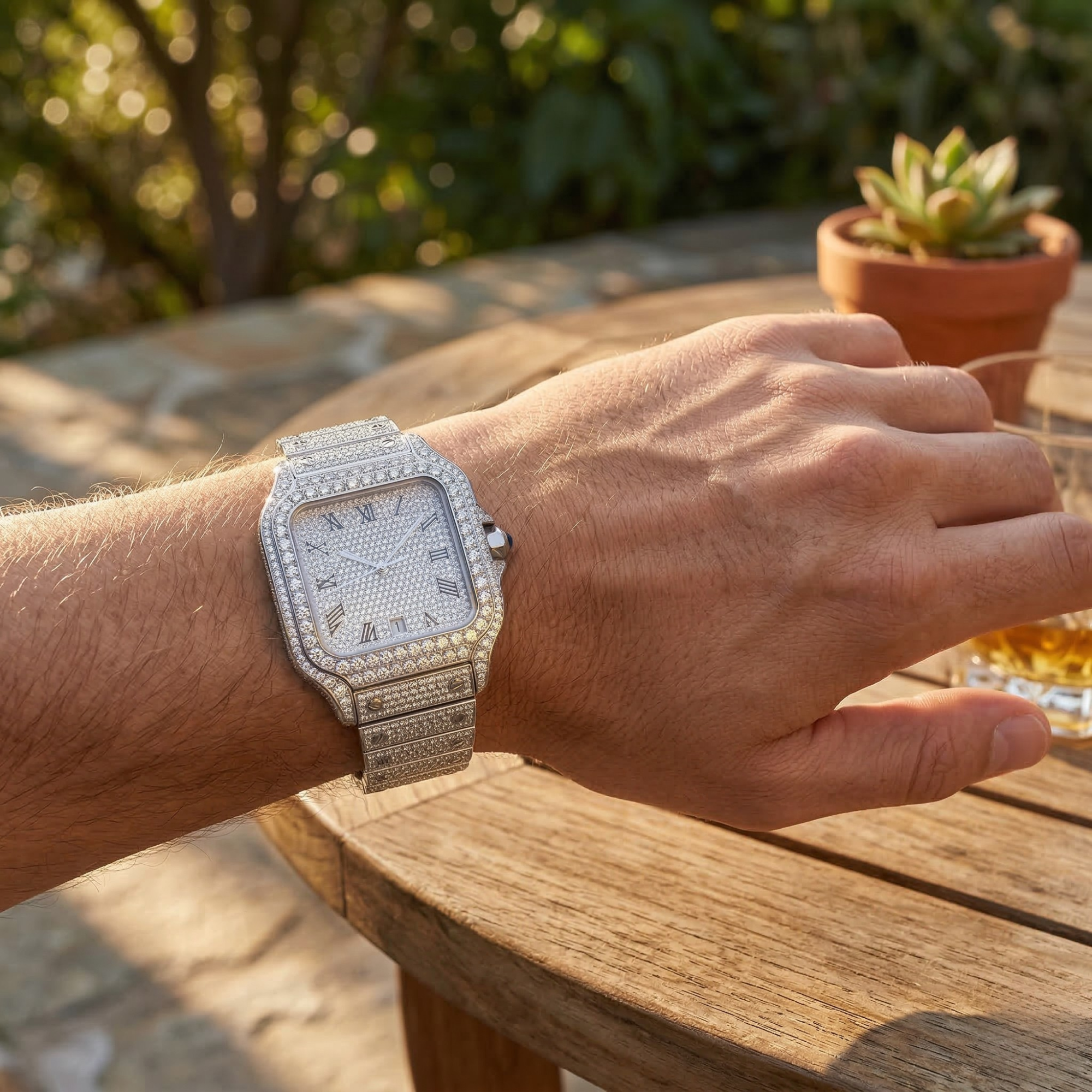 Excellent Jewels™ Men's 42MM Bust Down Moissanite Watch | 16CT D-Color VVS | Self-Winding Automatic Movement